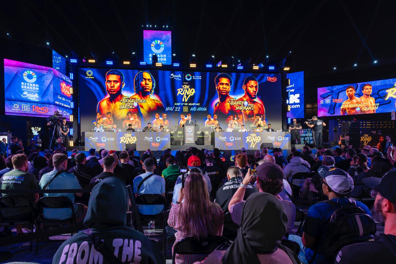 عقد في منطقة “بوليفارد سيتي” المؤتمر الصحفي الرسمي لعرض The Ring IV: Night of the Champions الذي يُعد واحدًا من أبرز فعاليات موسم الرياض 2025، في ليلة شهدت حضورًا كثيفًا من الإعلام والجماهير وضيوف الحدث، وسط أجواء تصاعد فيها التوتر والحماس قبل الأمسية القتالية المرتقبة بعد غدٍ (السبت) على أرض anb Arena.